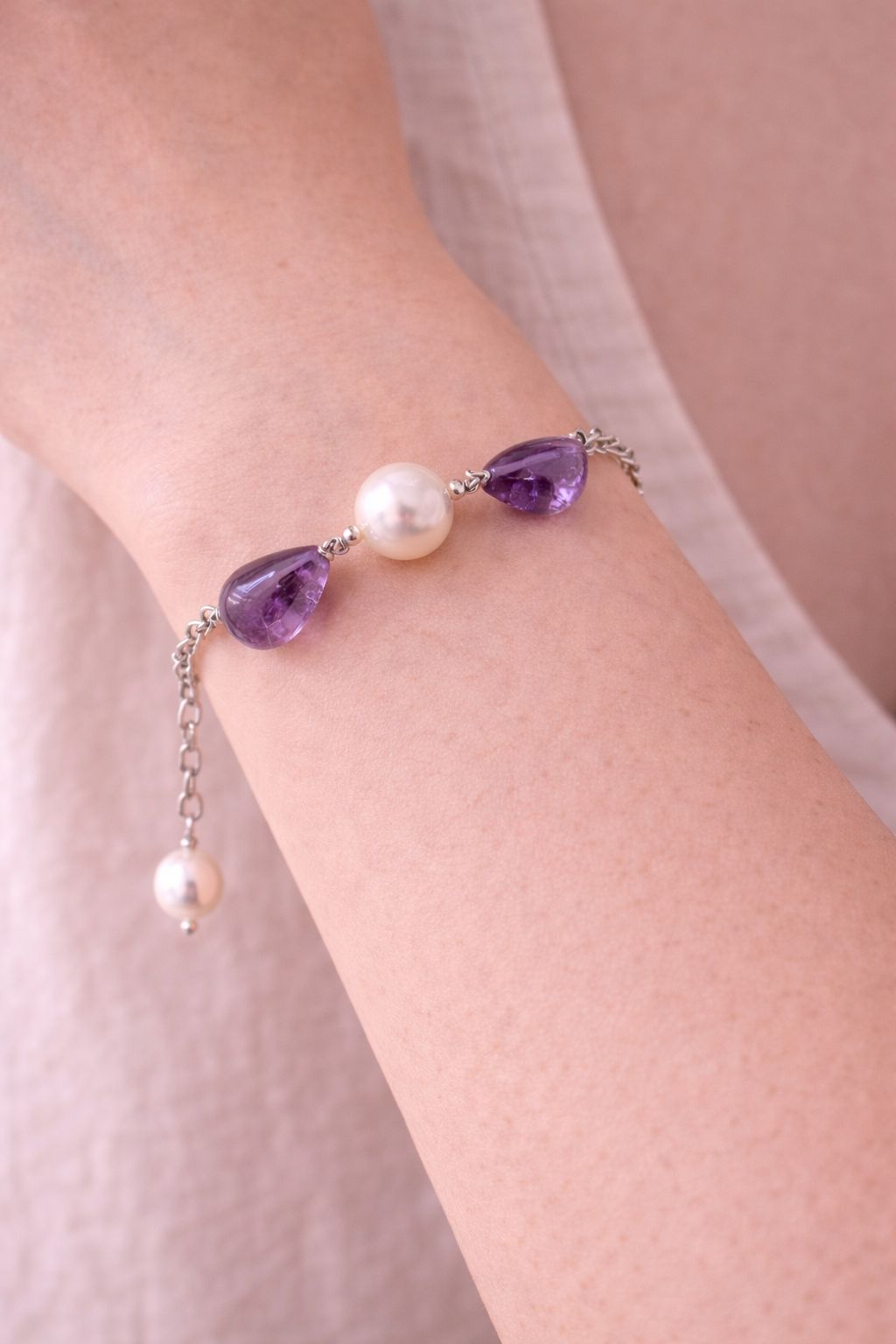 Be the first to review “Amethyst Drop & Pearl Silver Chain Bracelet” Cancel reply