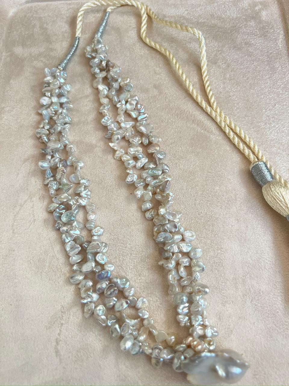 Multi-Strand Freshwater Pearl Chip Necklace with Adjustable Dori