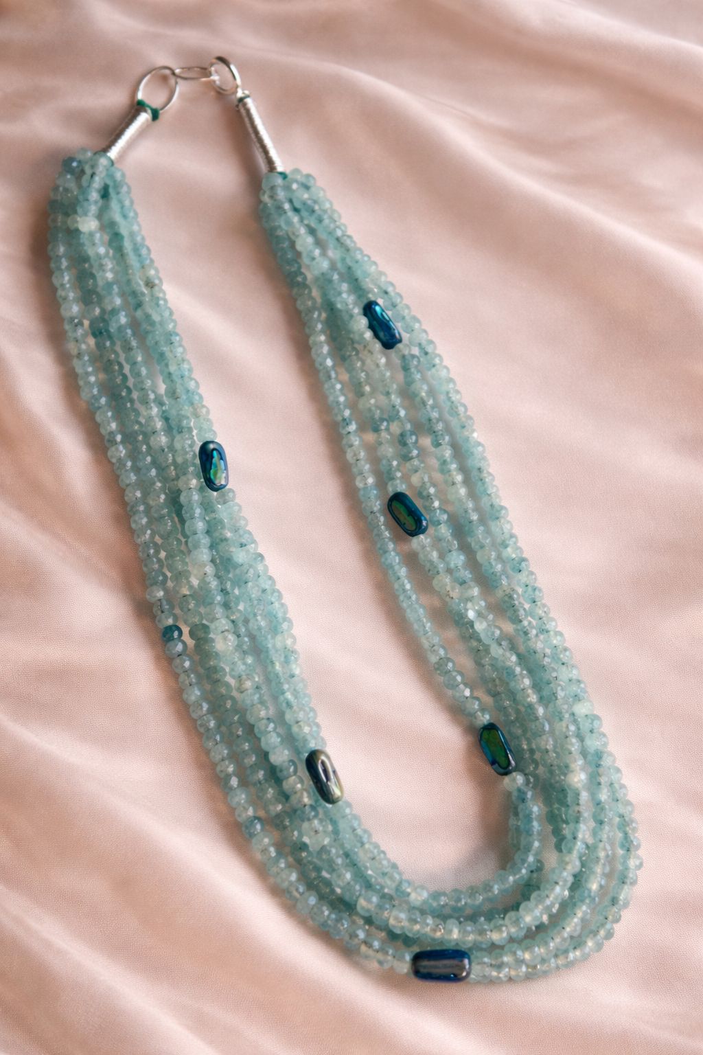 Dark Blue Quartz Pearl Multi-Line Dori Necklace