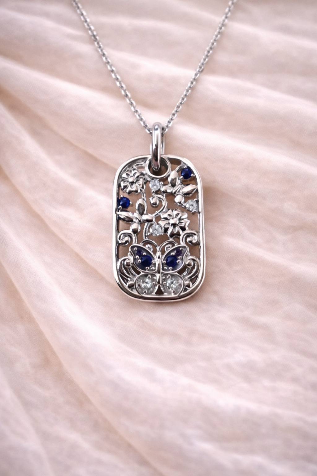 Intricate Design: This pendant features a captivating design that combines a graceful butterfly with a delicate floral motif, creating a harmonious and eye-catching piece. The details are meticulously crafted, showcasing exceptional attention to detail.