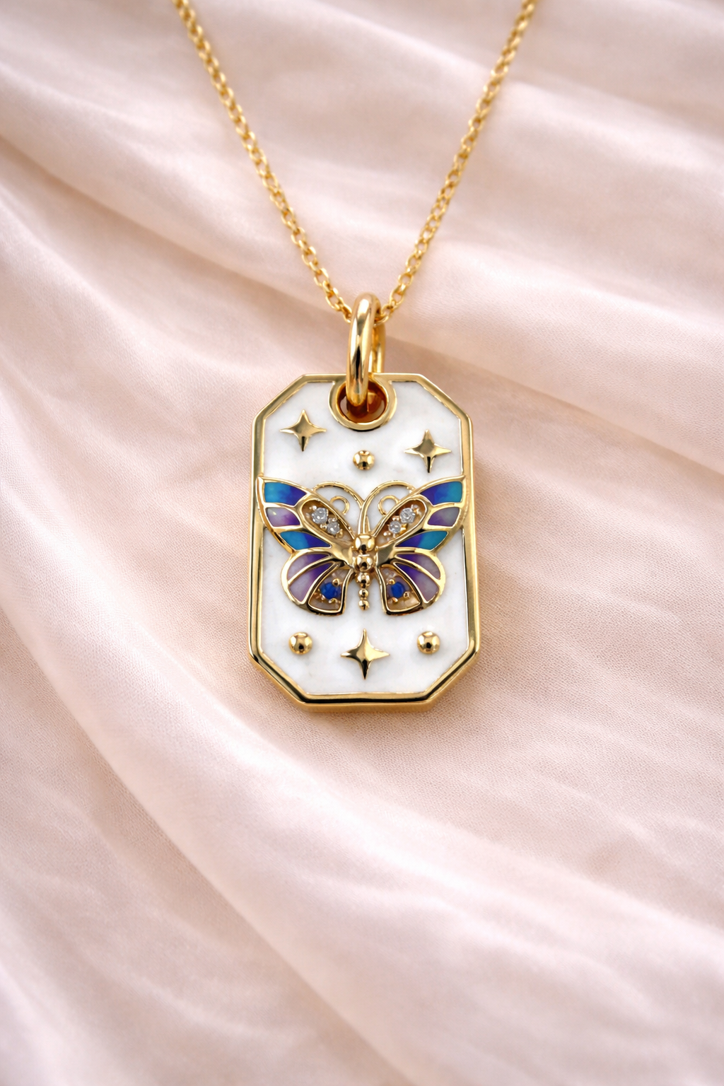 Intricate Butterfly Design: This pendant features a gracefully crafted butterfly design, showcasing exquisite detailing and craftsmanship. The butterfly’s form is delicately rendered, capturing its essence in a refined and elegant way.