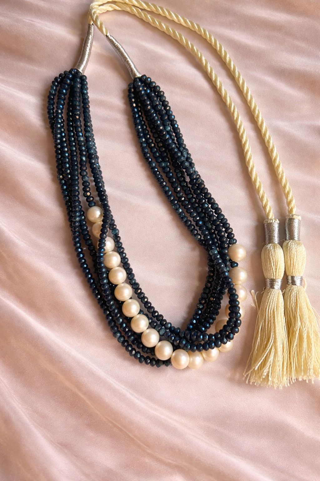 Home / Necklace / Dark Blue Quartz Pearl Multi-Line Dori Necklace