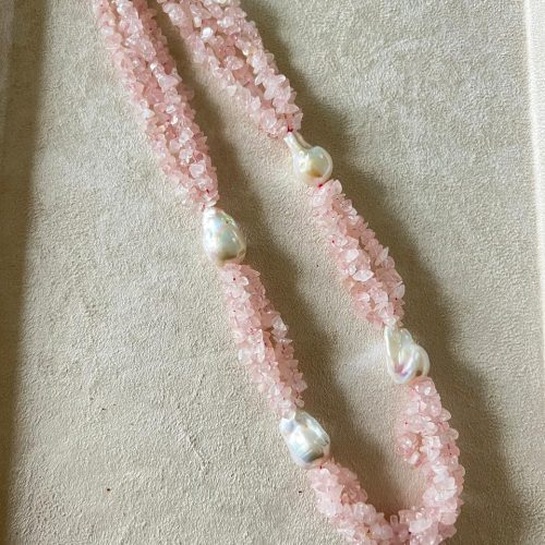 Rose Quartz Baroque Pearl Chip Necklace