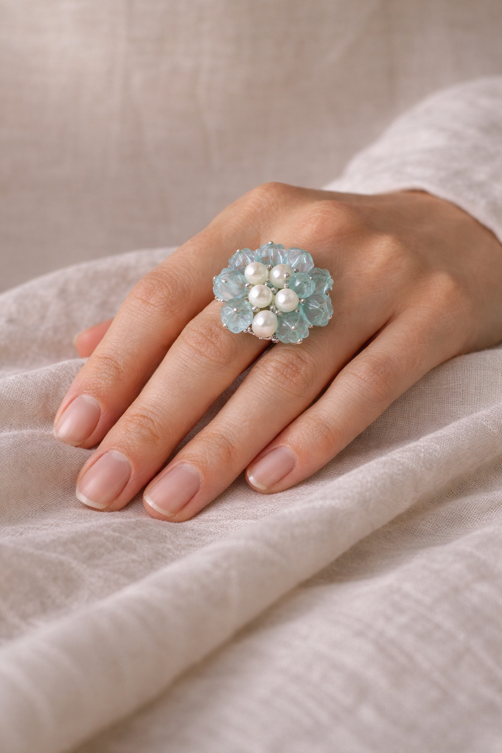 Silver Setting: The ring is crafted from high-quality sterling silver, enhancing the brilliance of the Fluorite and Mother of Pearl while ensuring durability and a beautiful shine.
