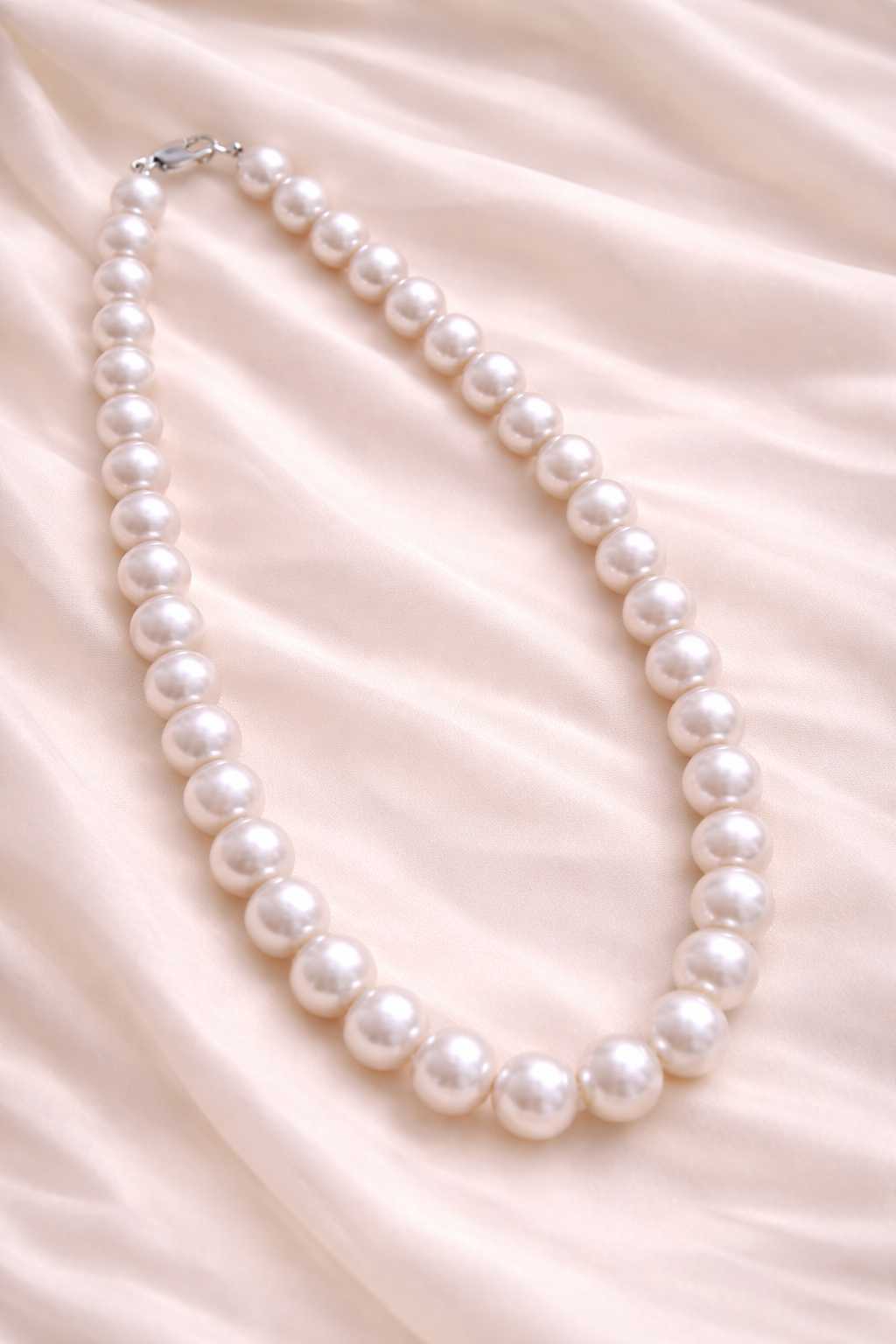Design: The necklace features a single strand of evenly spaced freshwater round pearls, creating a smooth and continuous line of elegance