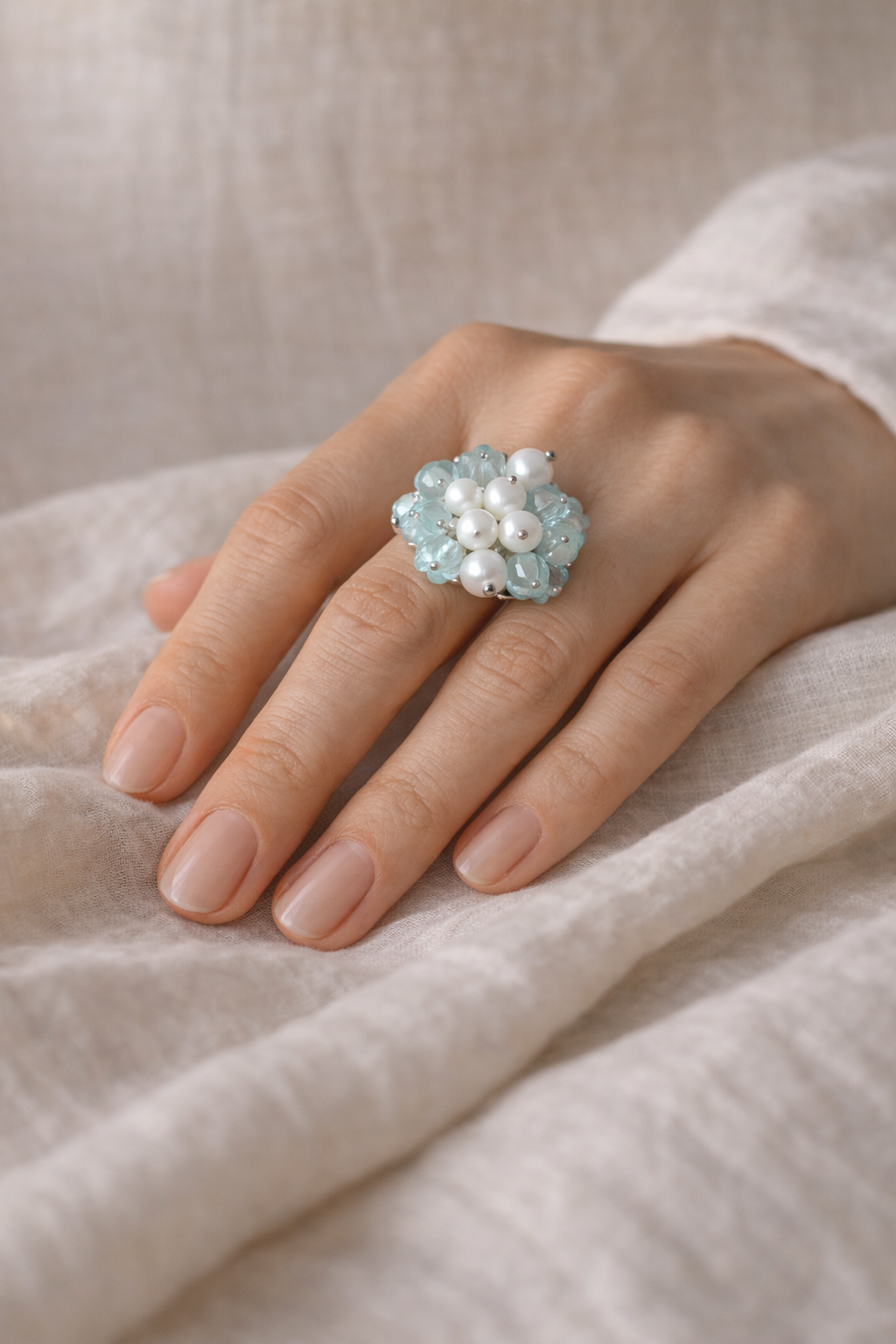 Let the Green Melon Pearl Ring add a touch of playful charm and natural elegance to your style.
