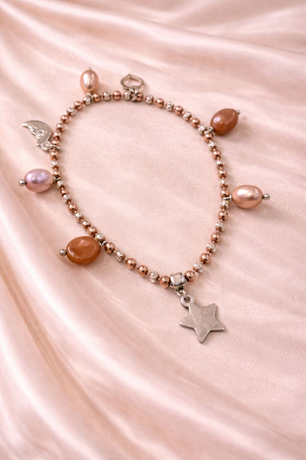 A graceful Italian pearl charm bracelet designed with soft freshwater pearl hangings and a delicate angel wing charm. Lightweight and elegant, this bracelet adds a touch of beauty and meaning to your everyday style.