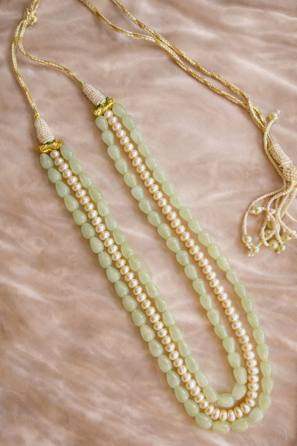 Home / Necklace / Mint Green Drop Pearl Layered Dori Necklace