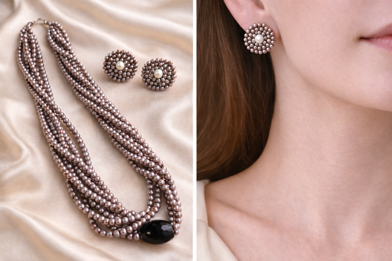 • Designed with genuine oxidised freshwater pearls and smoky stones