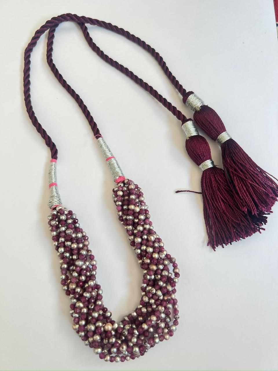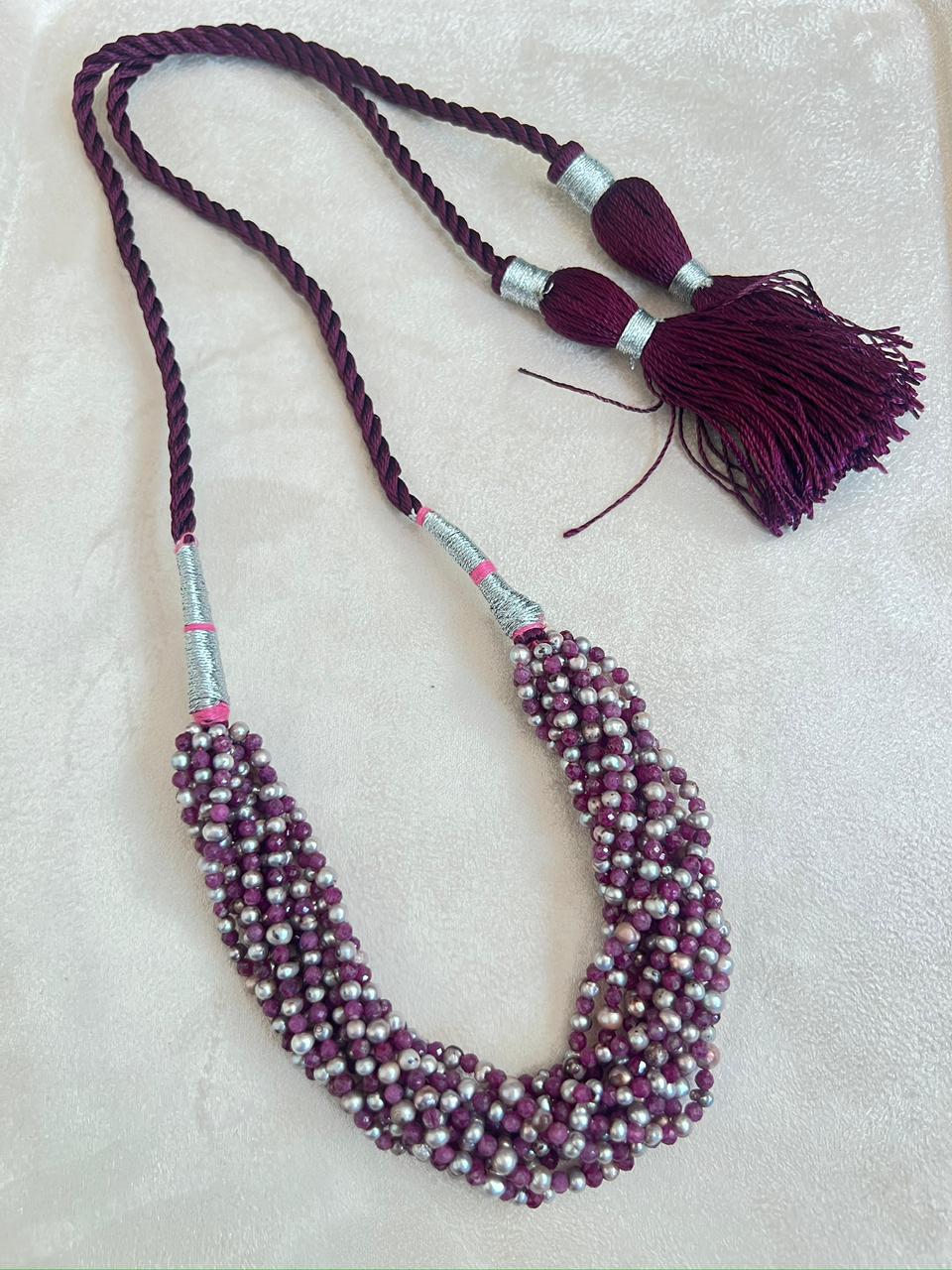 Elevate your style with our Fresh water Pearl Necklace, featuring Rhodolite Gemstone. adjustable dori Necklace Perfect for any occasion.