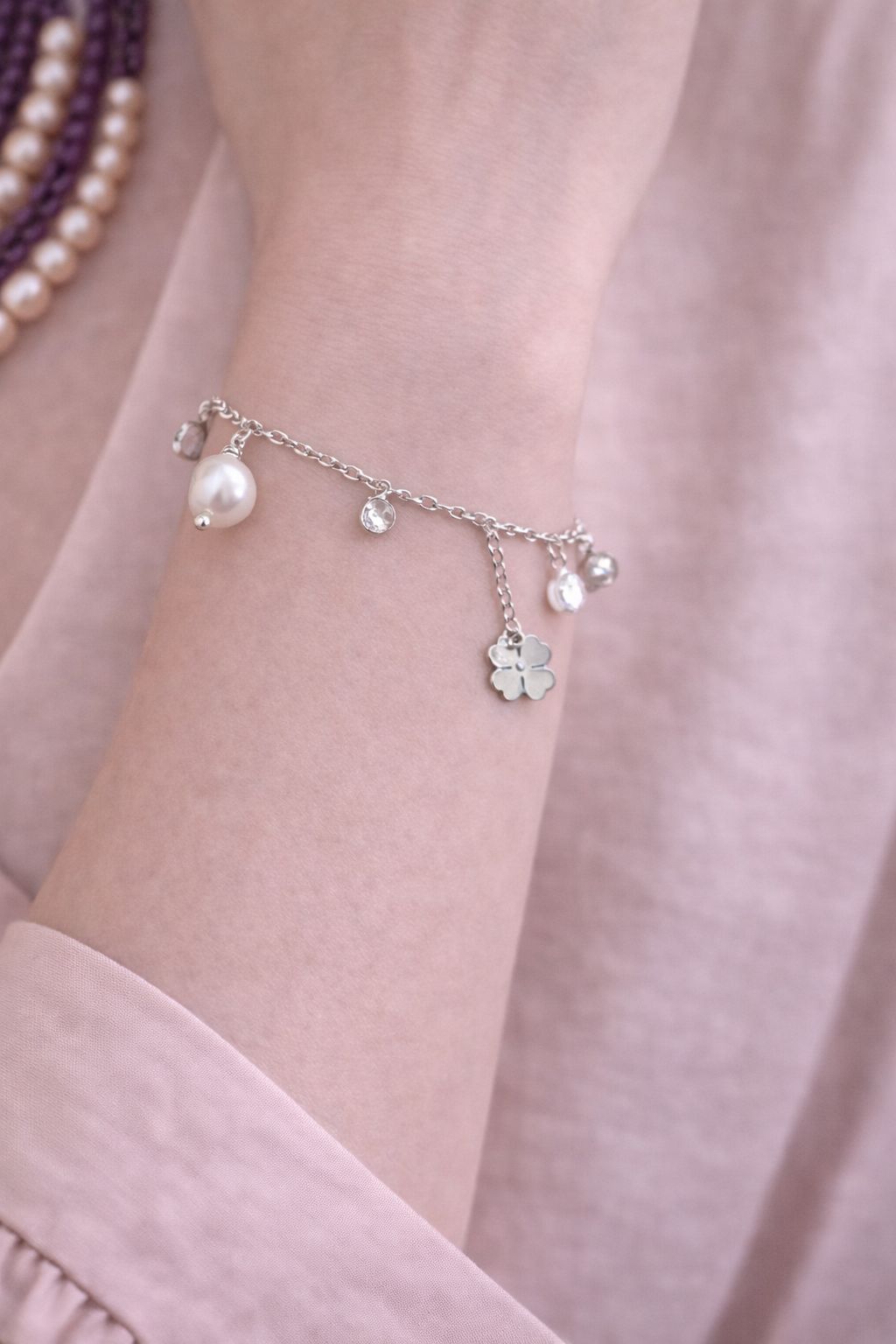 Pearl Charm Silver Bracelet with Heart Hands Motif