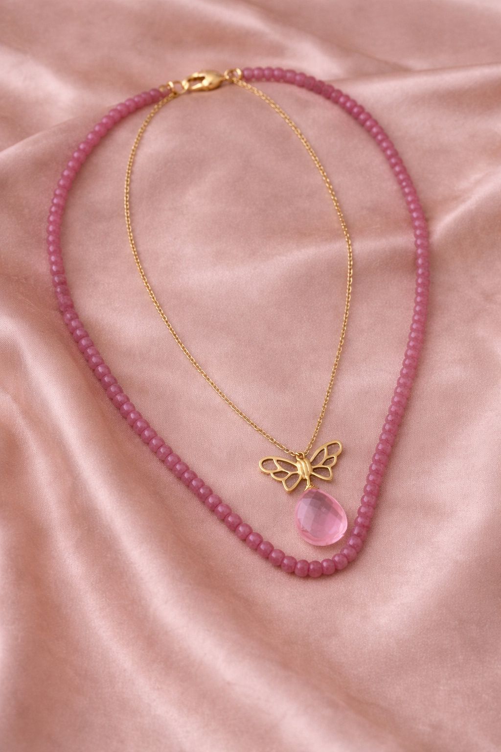Let the Pink Tourmaline Butterfly Layered Necklace add a touch of delicate transformation to your style.
