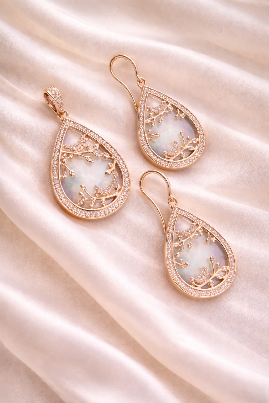 Let the Rose Gold Mother-of-Pearl Pendant Set be a testament to your appreciation for timeless elegance and exquisite detail.