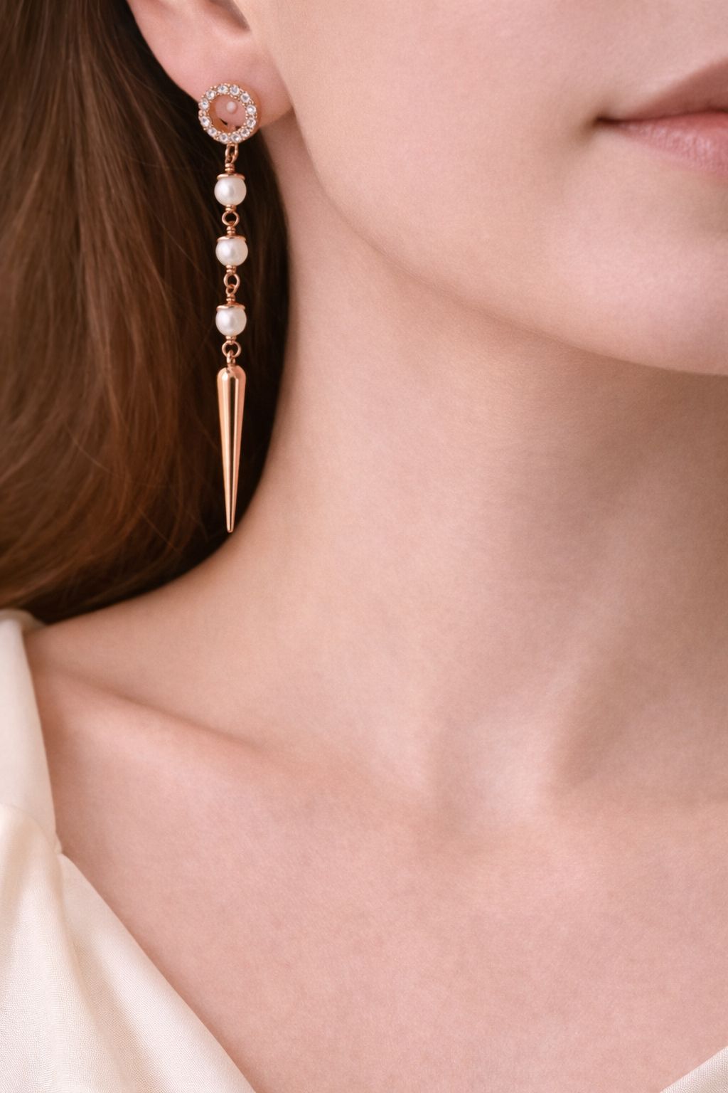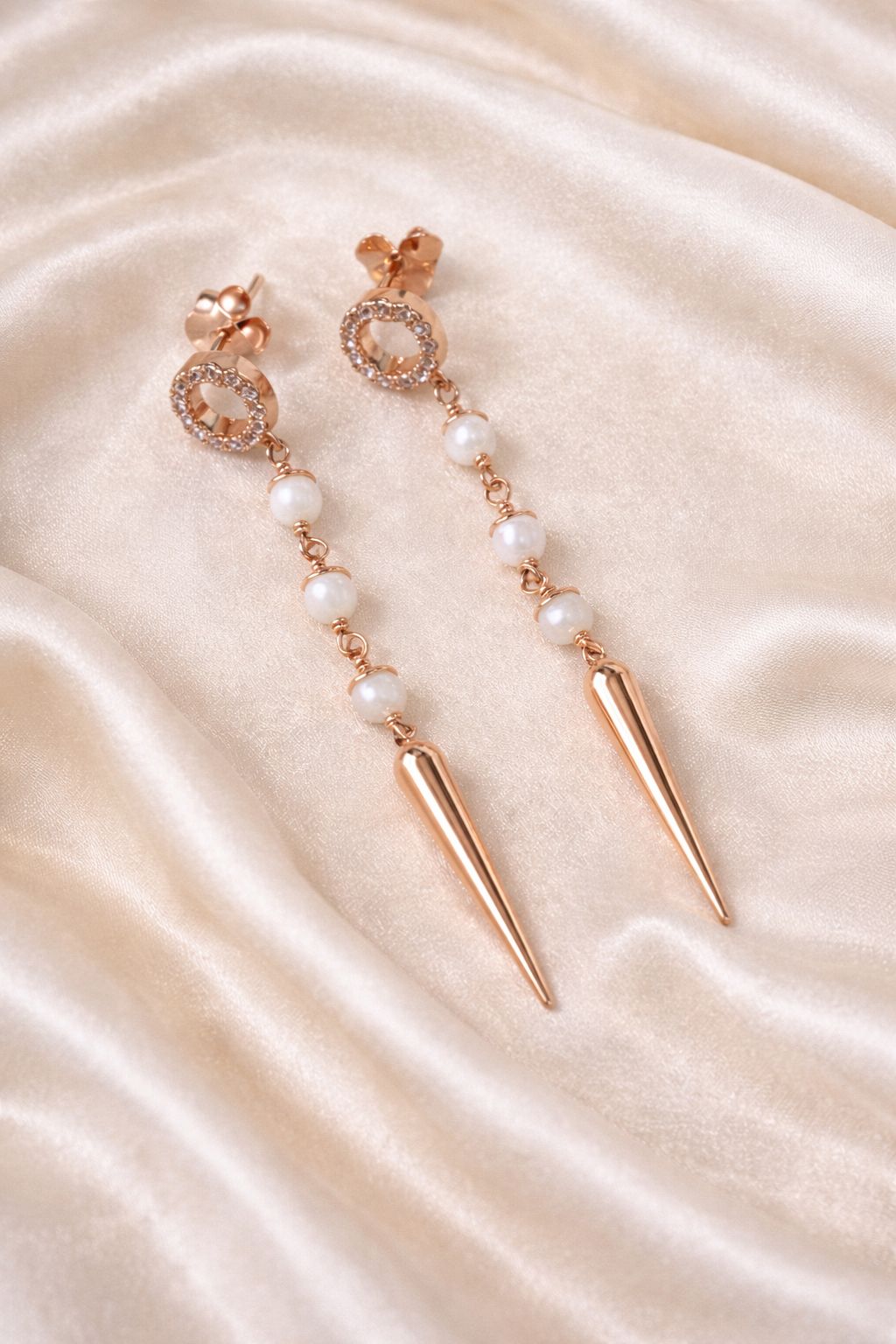 • Elegant rose gold cone–inspired earring design